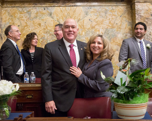 | Rep. Jeff C. Wheeland is shown here on the House floor with his wife during the swearing-in day celebration at the state Capitol. |