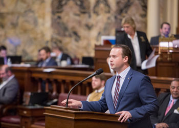 | On Wednesday, Rep. Eric Roe (R-Chester) spoke in the House chamber on the importance of protecting domestic violence victims with House Bill 2060. |